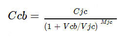 Where Cjc is collector junction capacitance at 0 junction voltage, Vcb is actual collector-base junction voltage, Vjc and Mjc are transistor specific voltage and coefficient. They should be taken from corresponding SPICE model. Common range for Vjc is 0.5-07V and for Mjc is 0.3-0.5.